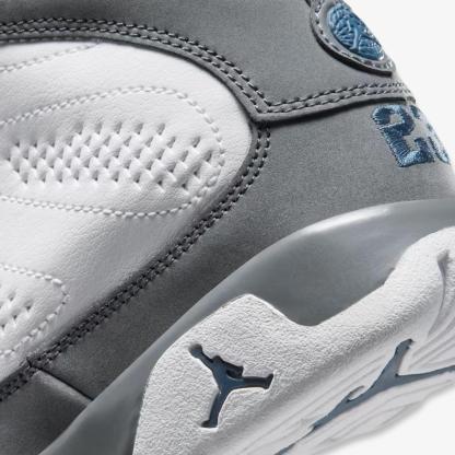 This sneaker features a sleek Flint Grey colorway, emphasizing a modern and stylish aesthetic. The classic Air Jordan 9 silhouette combines premium materials for comfort and support, making it suitable for both casual wear and athletic activities. This model reflects Nike's dedication to honoring basketball heritage while incorporating contemporary design elements.