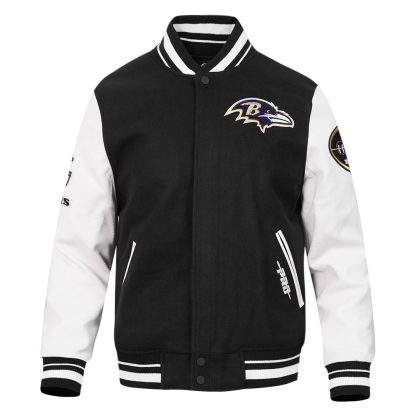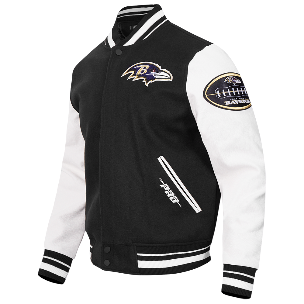 The Pro Standard Premium NFL Baltimore Ravens Old English Men's Rib Wool Varsity Jacket (Black/White)