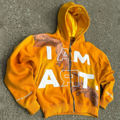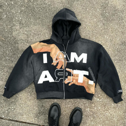 I Am Art Print Long Sleeve Zipper Applique Embroidered Hoodies