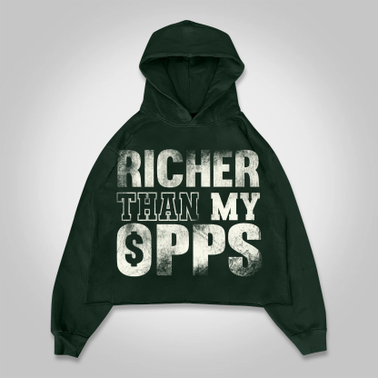Richer Than My Opps Graphics Cropped Hoodie