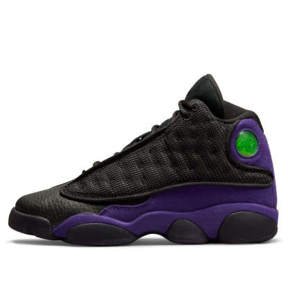 The Air Jordan 13 (GS) ‘Court Purple’ offers a familiar violet palette to Tinker Hatfield’s original 1997 design. Built with tumbled black leather and purple synthetic suede, the upper is almost entirely obscured by dimpled black mesh overlays covered in reflective detailing. Branding elements include the 13’s holographic cat eye and an embroidered purple Jumpman atop the tongue. Underfoot, the panther paw outsole features herringbone-traction rubber pods for optimal grip. These shoes are offered in grade school sizing and are sure to make your little one feel like a superstar on the court.
